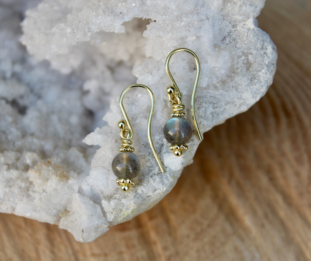 925 Silber mit 585 Gelbgold plattiert und Labradorit Perle