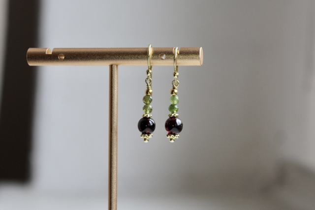 Ohrhänger aus 925 Sterlingsilber, plattiert mit 585 Gelbgold und Granat und grünem Turmalin.